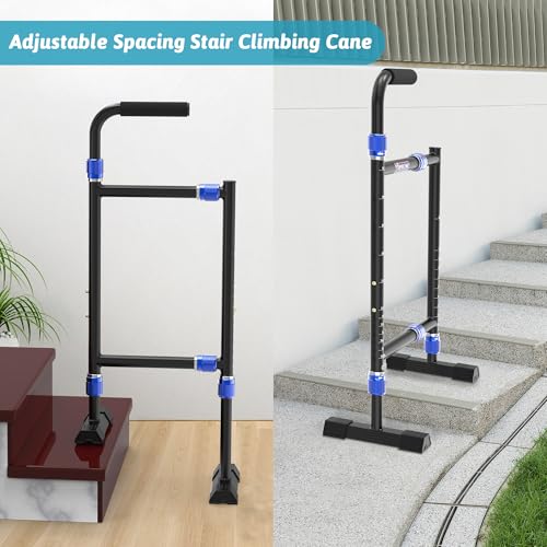 Specification: Height & Width Adjustable Stair Assist Cane for Seniors, Customizable to fit Most Indoor/Outdoor Steps, Wide Anti-Slip Base, Professional Stair Climbing Assist Cane for Sore Knees & Post-Surgery
