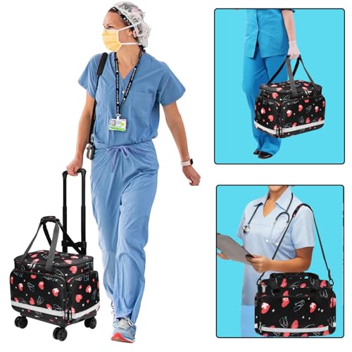 Specification: Medical Bag Rolling Roller Bag Trolley Duffel Nurses EMT CNA RN Empty for First Aid Responder Home Health Care Nursing Student Roll Duffle Bag Carry on with Wheels Wheeled Work Physicians Doctor